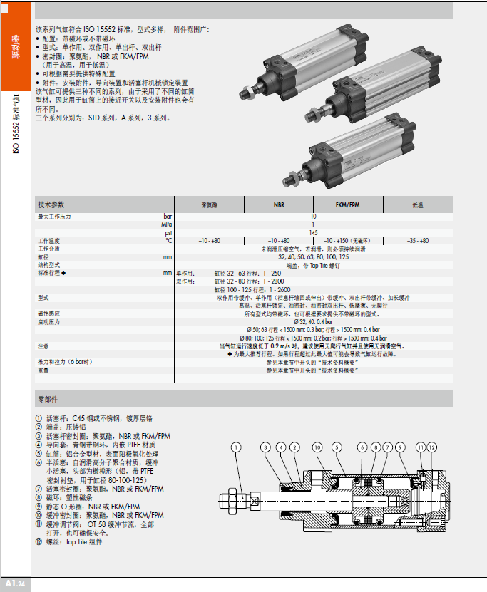 ISO 15552标准低摩擦气缸